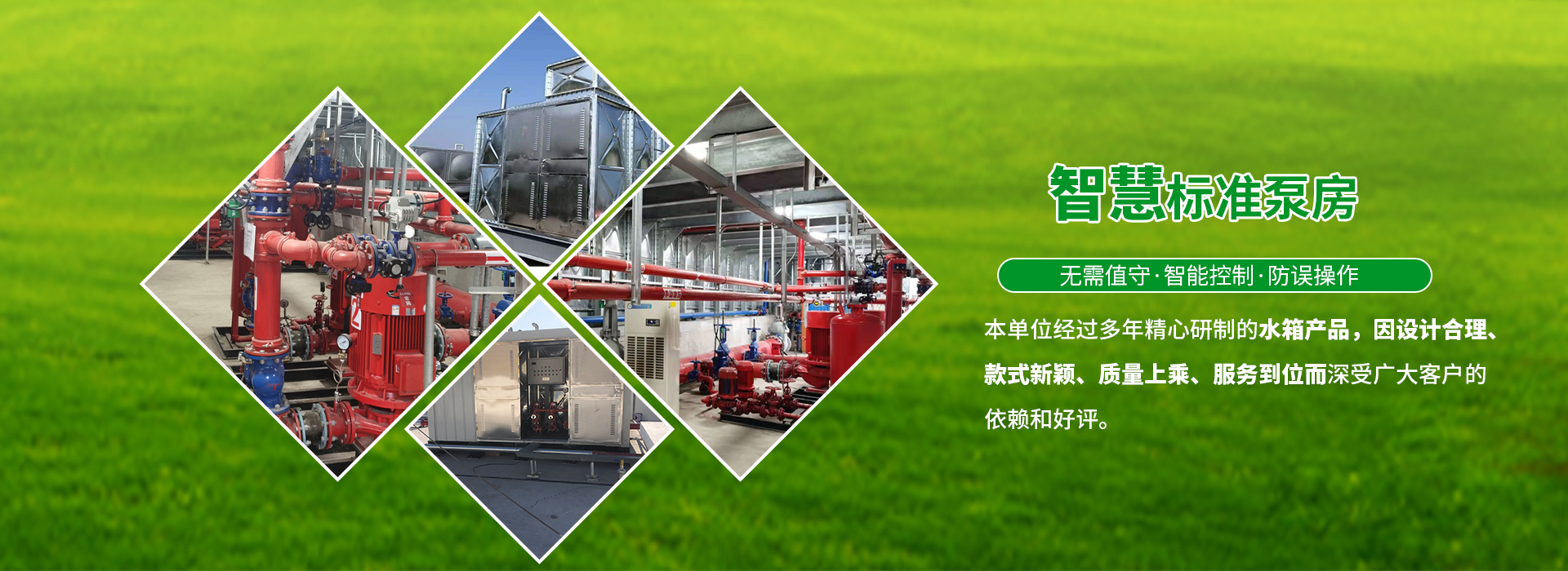 我公司擁有十多種產品,主要包括:不銹鋼水箱、大模塊裝配式水箱、智慧標準泵房、生活供水設備、消防箱泵一體化設備、消防穩壓設備、不銹鋼隔油池、污水提升預制泵站、水箱消毒器、氣壓罐等。
